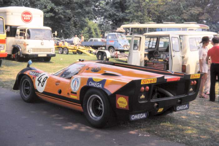 - Mclaren M6B Chevrolet 50-16 for Vic Elford (photo below) and Alistair Cowin. The M6B ( in total 26) was constructed by a privateer, Trojan. The design was the work of Robin Herd and Gordon Coppuck. This car, originally owned by John Woolfe made his debut in September 1968, raced in the 24 hours Le Mans 1969 and came into the possession of Alistair Cowin in 1970. In 1971 it was raced by John Jordan in the UK and in the 1972 and 1973 in the interserie.