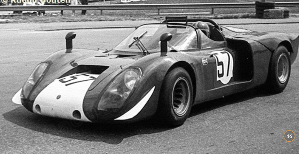 Car from 1967 driven by Mike de Udy (GB) in local races, but also in the Endurance world Championship. The car was owned by David Prophet from late1968 . In July 1970, Egmont Dursch became the owner. Car used in Le Mans film carrying Porsche 917 bodywork, crashed and repaired in 1970. For 1971 and 1972 Interserie, the car is transformed into a spyder configuration. In 1982, it changed owner again. Car is still in Germany.