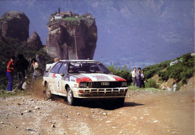 Four Quattros against the Fiat Italia 037 turbo machines and the Rothmans-sponsored Opel of Mouton's title rival Röhrl took the start of the Acropolis Rally in Athens at the end of May. Four days of rally, 57 chrono stages. It had been raining in the region for a few days. It started with some asphalt stages and then a muddy course. Just the right thing for an Audi. Unfortunately, it was only Hannu Mikkola who was the fastest. The three other cars had small problems; Michèle had problems with the turbo. When the turbo concerns were resolved just before the fifth chrono stage, she got into a good fast rhythm and took the lead of the rally. During the afternoon, Mouton widened the gap on the pursuers and brought the lead over Toivonen's Opel to more than a minute. However, in the last stages, which were held in the dark, she lost half a minute due to poorly adjusted headlights. On Tuesday morning the participants started from Kalambaka, back towards Athens. Michèle continued to attack and quickly increased the gap with Toivonen, who was hampered by transmission problems. At the end of the first round she was more than six minutes ahead of Röhrl and sixteen minutes ahead of Jimmy McRae's Opel Ascona. On Wednesday in the Peloponnese, Michele continued to dominate calmly and collectedly. It seemed that everyone was trying to consolidate their results and spared the machines on the tough course. Not much changed on the last day. Michèle Mouton took her second victory of the year. She dominated the entire rally and humiliated the Lancia and Opel factory drivers, won 26 chrono stages and was in the lead of the world championship.
